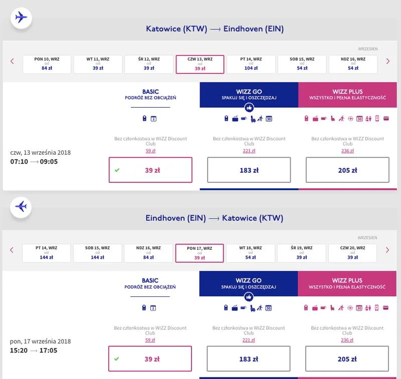 | Wizz Air | Bezpośredni | 2 godziny | Standardowy | Niska |